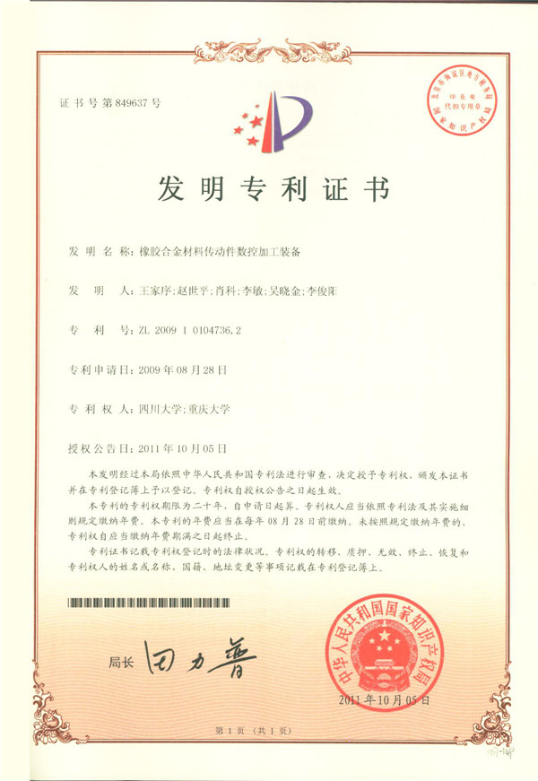 水潤滑橡膠合金軸承及其制造裝備發(fā)明專利證書